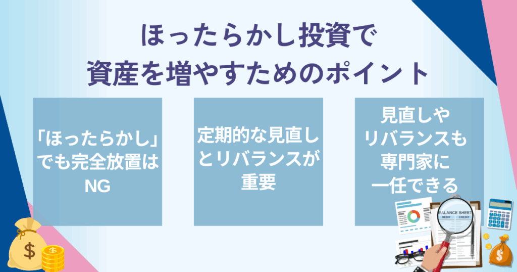 - ほったらかし投資で資産を増やすためのポイントが知りたい
