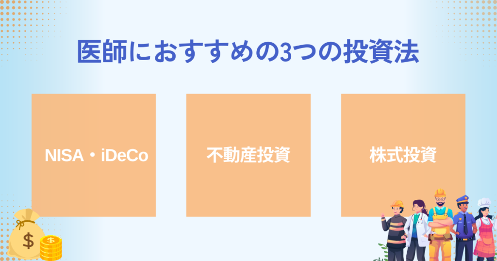 これから資産運用を始めようと考えている医師の方には、以下3つの投資法の活用がおすすめだ。
