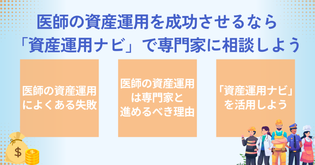 ここでは、医師が資産運用する際に陥りやすい失敗を紹介し、「資産運用ナビ」の活用法について解説する。