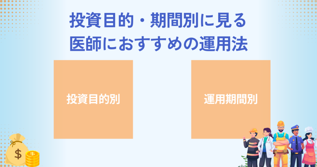 医師のように忙しくても、目的別に運用を整理することで無駄なく着実に資産を増やせる運用が実現できます。
