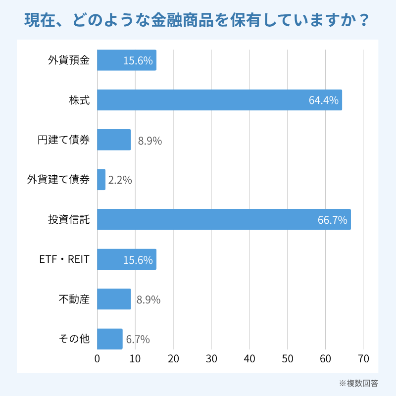 さらに、外貨預金やETF・REITを活用する層も一定数存在しており、分散投資を意識する動きが見て取れる。
