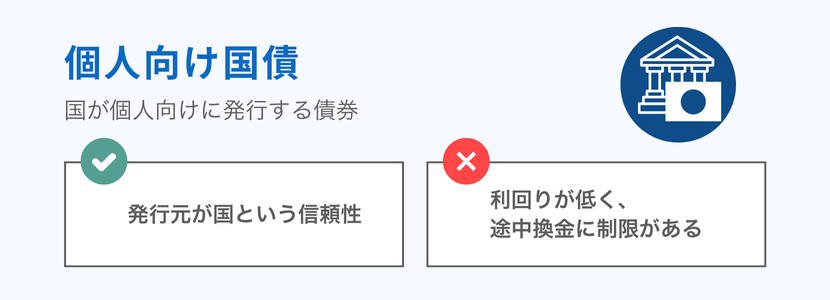 個人向け国債は、日本国が個人を対象に発行する債券である。国が発行体であるため安全性が非常に高く、元本割れのリスクを避けたい場合に適した金融商品だ。