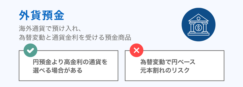 外貨預金とは、日本円ではなく米ドルやユーロなどの外国通貨で預金する商品です。