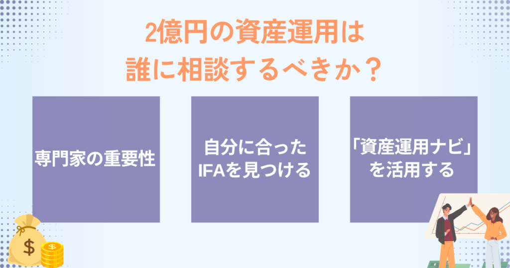 2億円という規模の資産を運用するのであれば、専門家に力を借りることをおすすめする。