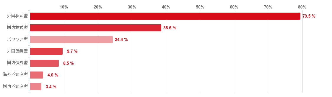 「外国株式型」が79.5%で最も多く、「国内株式型」が38.6%でこれに続いた。
