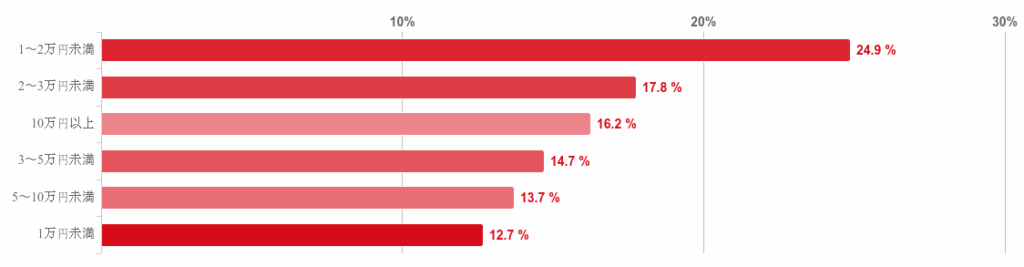 また、これに「2〜3万円未満」(17.8%)、「10万円以上」(16.2%)で続いた。