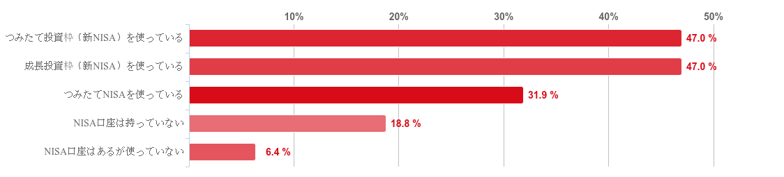 「つみたて投資枠(新NISA)を使っている」と「成長投資枠(新NISA)を使っている」が同率47.0%で最も多かった。
