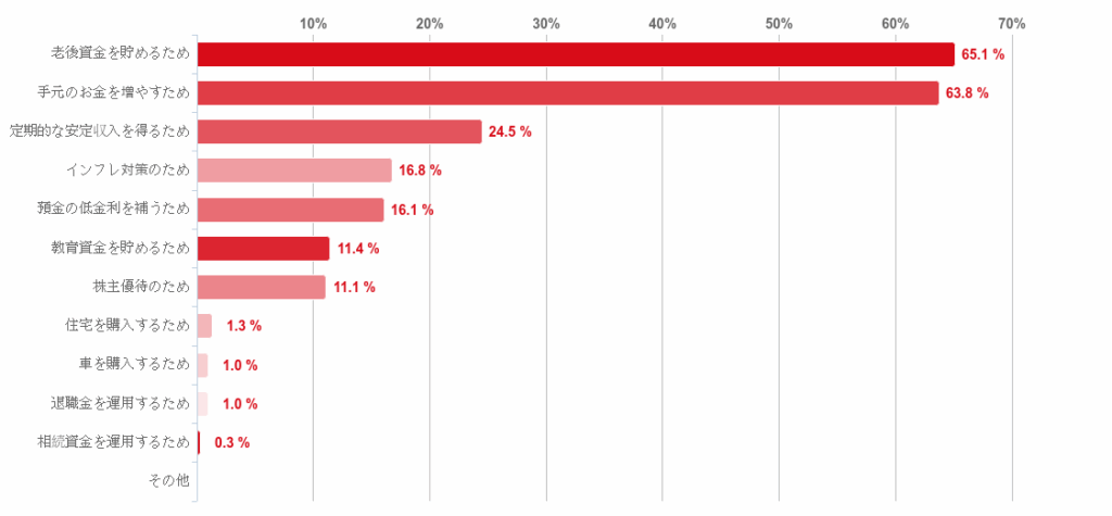 また、「定期的な安定収入を得るため」「インフレ対策のため」との回答もあった。
