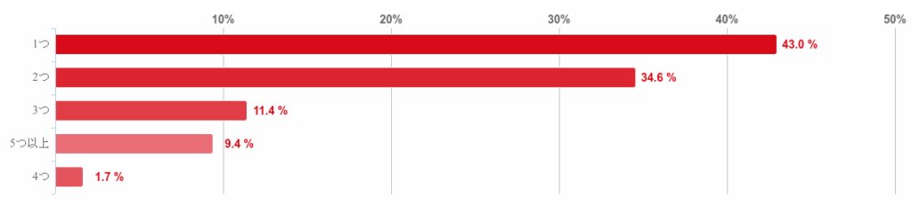 「1つ」が43.0%で最も多く、「2つ」が34.6%で続いた。