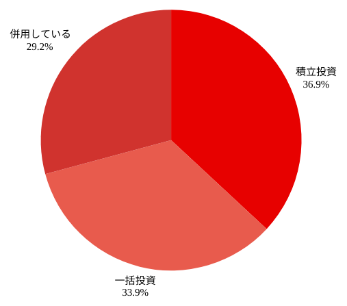 「積立投資」が36.9%と最も多く、続いて「一括投資」が33.9%となった。