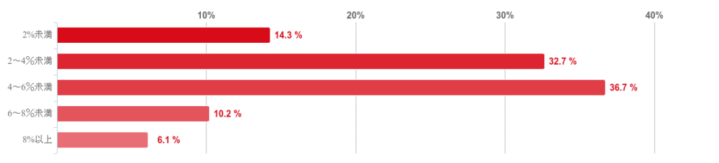 「4~6%未満」が36.7%で最も多く、次いで「2~4%未満」(32.7%)、「2%未満」(14.3%)と続いた。