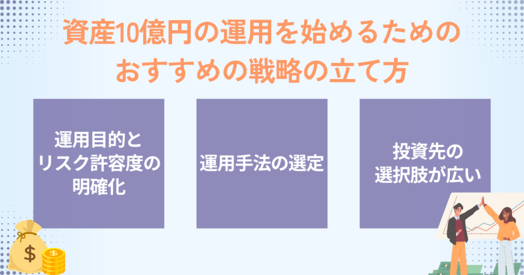 ここからは、10億円を運用するにあたっておすすめの戦略の立て方を解説する。