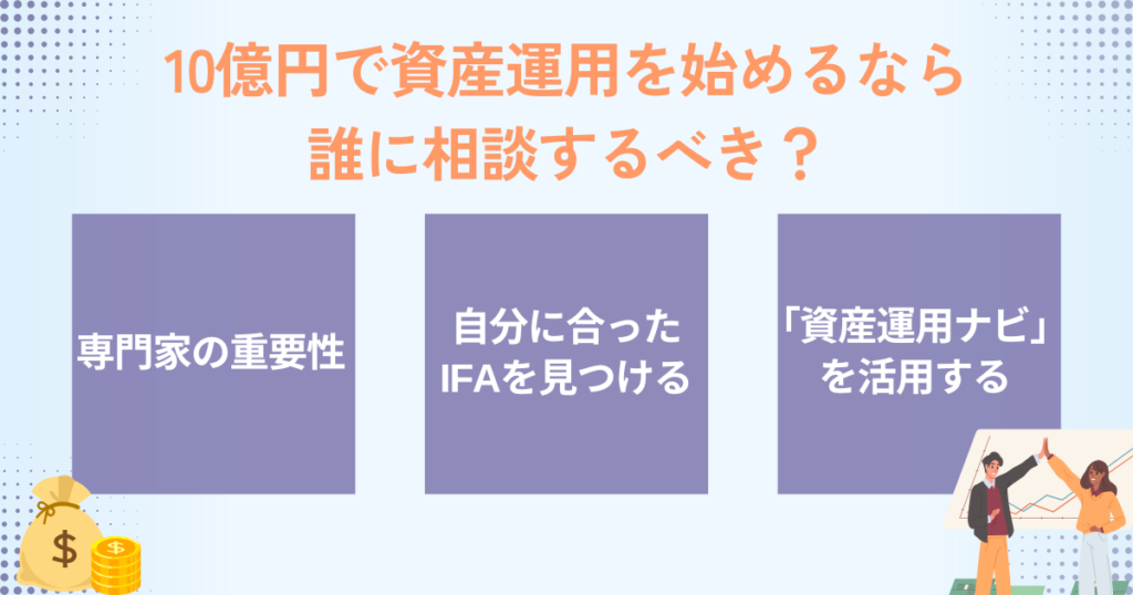 10億円の資産運用を始めるにあたり、相談先としておすすめなのがIFAだ。