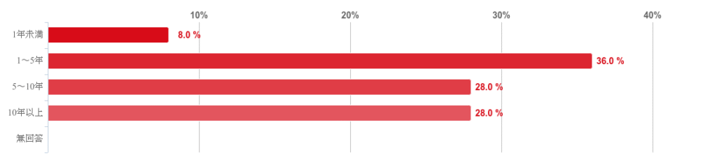 また、これに「5~10年」と「10年以上」(28.0%)、「1年未満」(8.0%)と続いた。