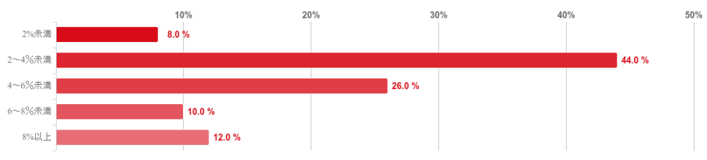 「2~4%未満」が44.0%で最も多く、次いで「4~6%未満」(26.0%)、「8%以上」(12.0%)と続いた。