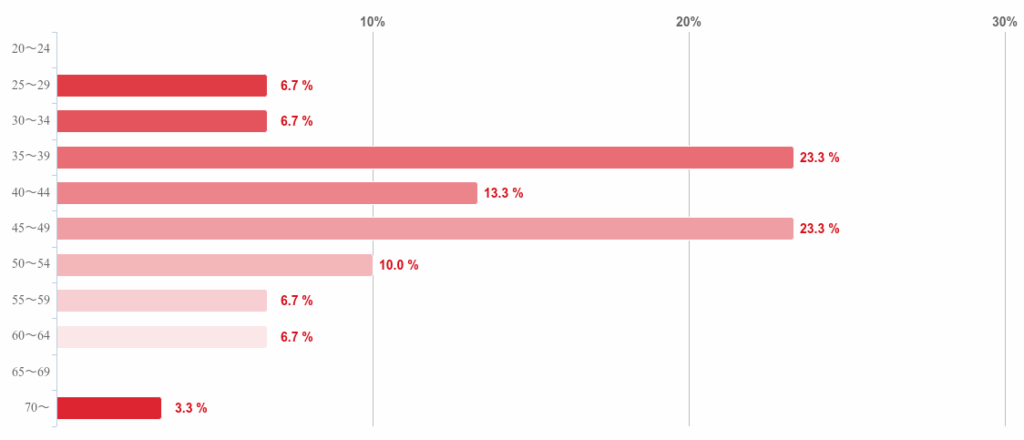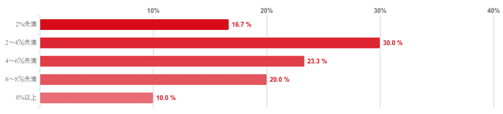「2~4%未満」が30.0%で最も多く、次いで「4~6%未満」(23.3%)、「6~8%未満」(20.0%)と続いた。