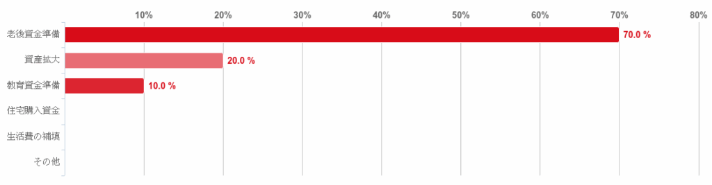「老後資金準備」との回答が70.0%で圧倒的多く、「資産拡大」との回答は20.0%だった。