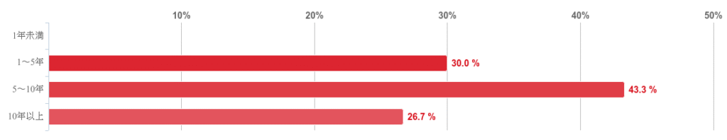 「5~10年」が43.3%と最も多く、約5割を占めた。