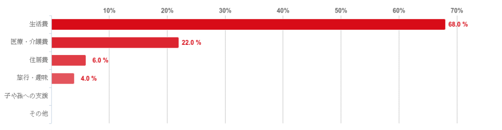 そのほか、「医療・介護費」(22.0%)、「住居費」(6.0%)、「旅行・趣味」(4.0%)という順となった。