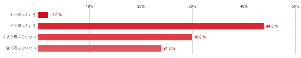 また、「十分進んでいる」と回答した人も僅かながら見受けられた。