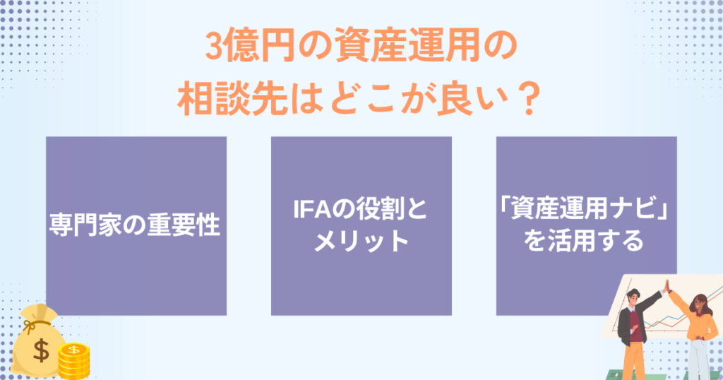 3億円の運用管理について相談する場合、IFA(資産運用アドバイザー)の活用がおすすめだ。