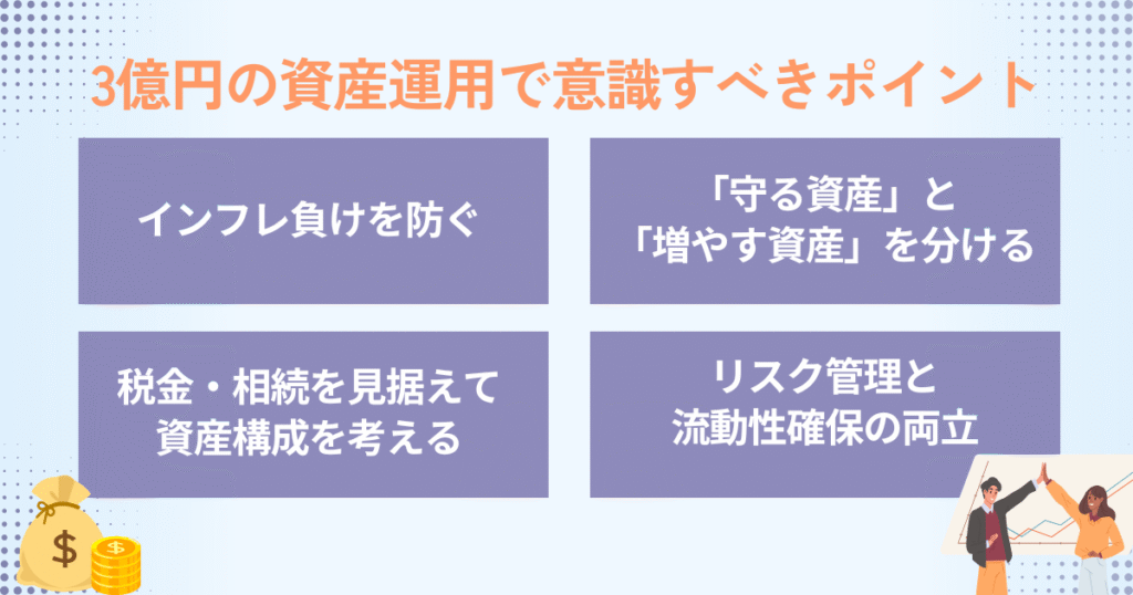 3億円の資産運用では、「増やす」より「守る」意識が重要だ。