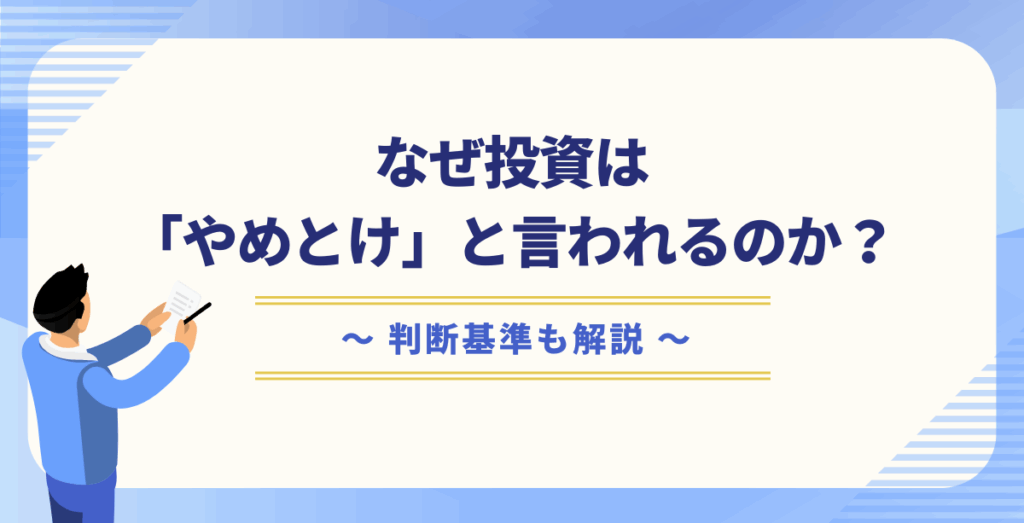 なぜ投資は「やめとけ」と言われるのか?始めるべきか、やめるべきかの判断基準を徹底解説