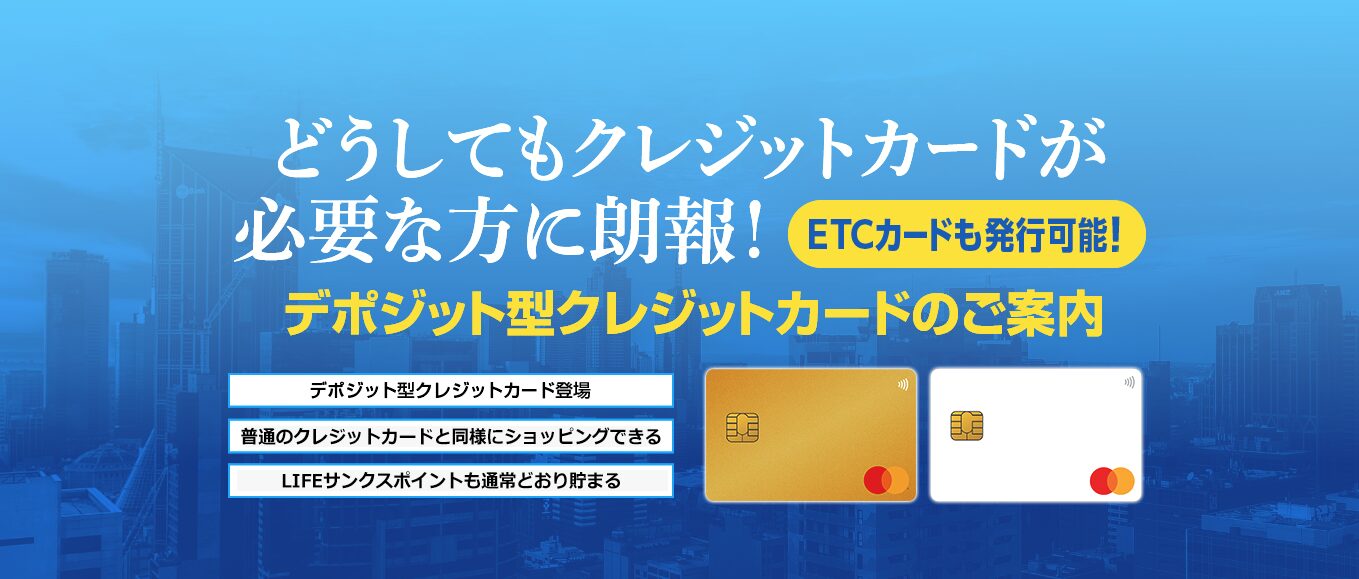 それでもライフカードの審査が心配という人のためには、審査の基準がグッと下がるデポジット型カードがおすすめ。