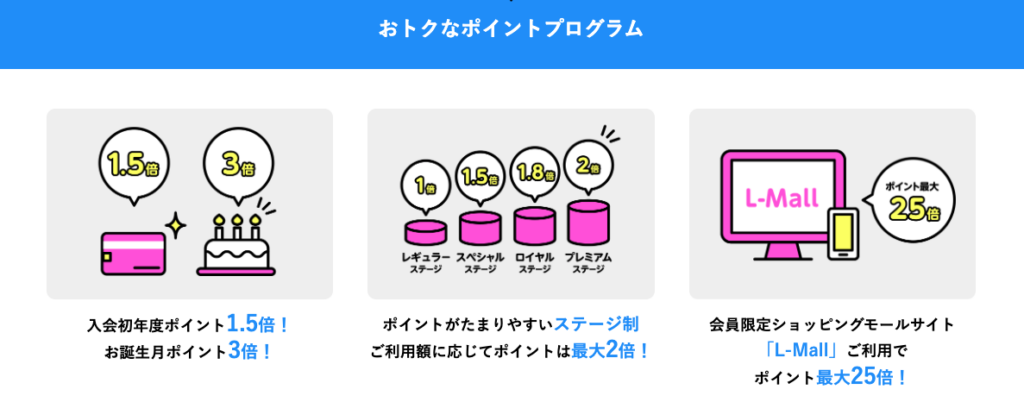 また、ステージ制プログラムで、使うほどポイント率がアップする仕組みもある。