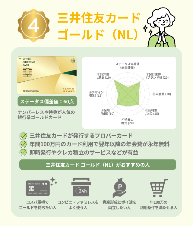 「ステータスがない」と言われるゴールドカードの特徴は、次のとおりだ。