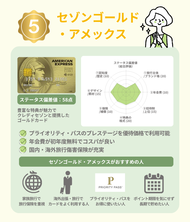 ゴールドカードのステータスの観点では、以下のカードがランキングトップ5として抽出された。