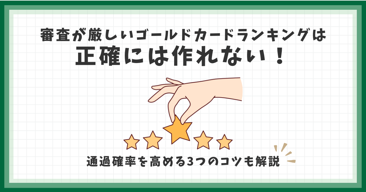 審査難易度の高いゴールドカードを作成するコツも解説しているので、ぜひ参考にしてほしい。