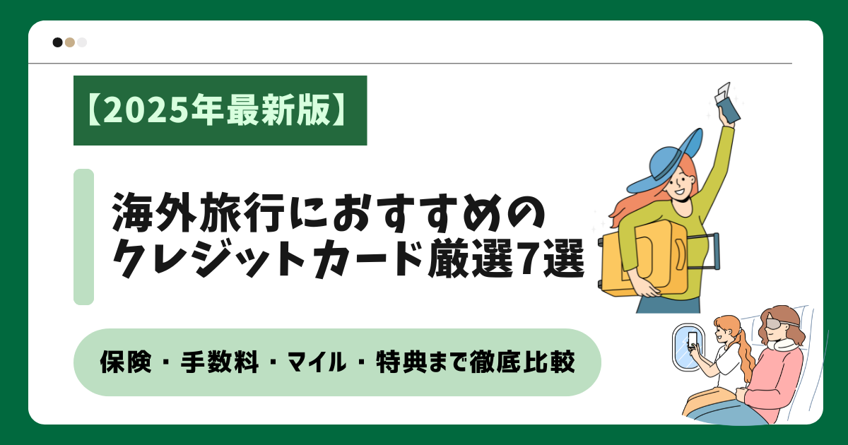 といった基準から、2025年に本当におすすめできる海外旅行向けクレジットカードを厳選して紹介する。