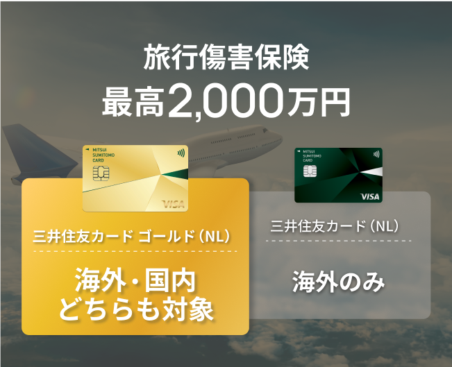 - 最高2,000万円補償の海外・国内旅行傷害保険(利用付帯)