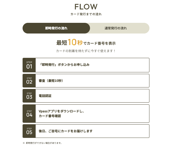 なんと、申し込み完了から最短10秒で審査が完了し、カード番号が即時発行されるのだ。