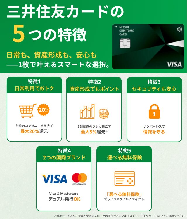 ここでは、三井住友カードの5つの大きな特徴について解説する。