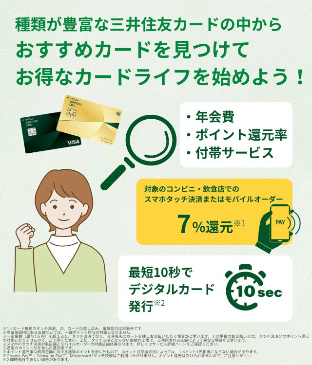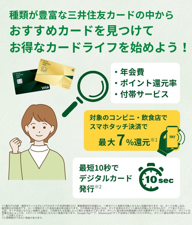 種類が豊富な三井住友カードの中から、おすすめカードを見つけてお得なカードライフを始めよう!