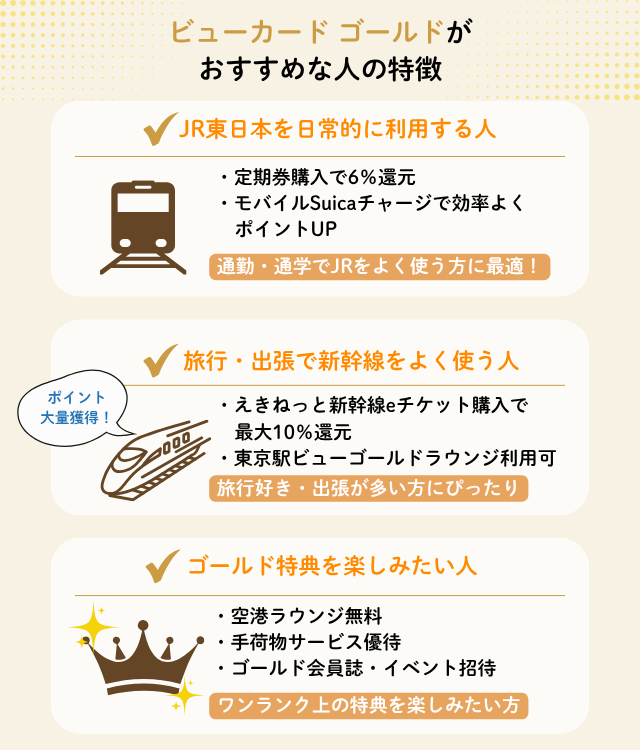 まずは、ビューカード ゴールドのメリット・特典を見ていこう。