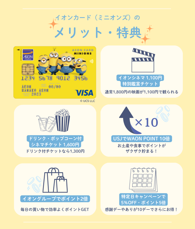 まずは、イオンカード(ミニオンズ)のメリット・特典から解説する。
