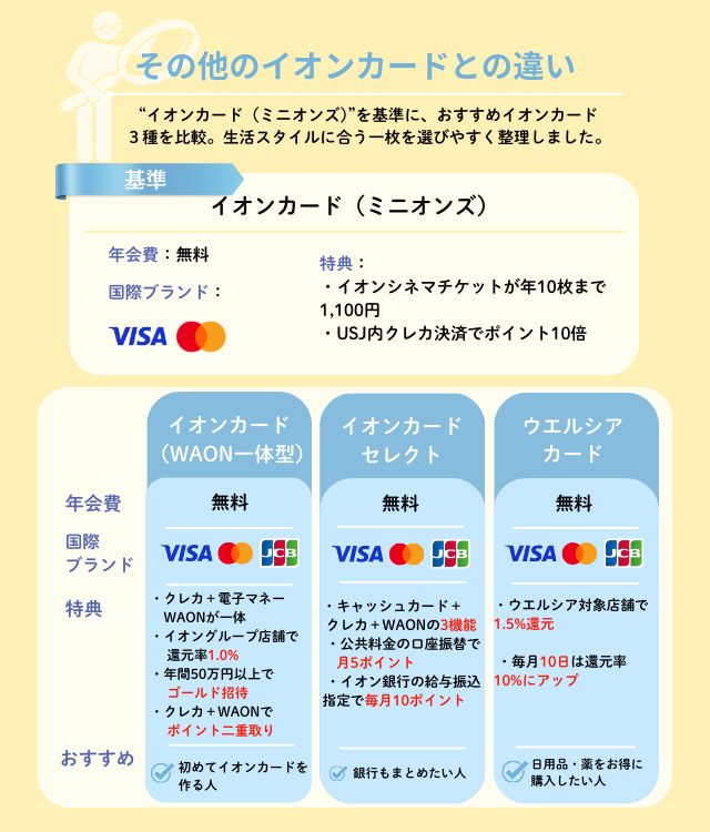 ここで改めて、イオンカードのその他の主要券面との違いを比較しておこう。
