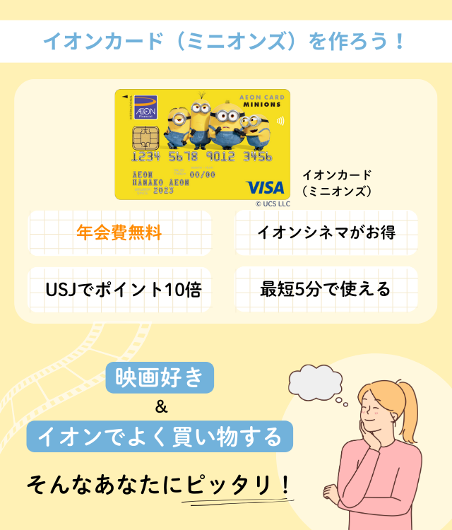 映画好きな方や、普段の買い物の拠点がイオン系列店舗の方にとっては、イオンカード(ミニオンズ)を保有するメリットが大きいはずだ。