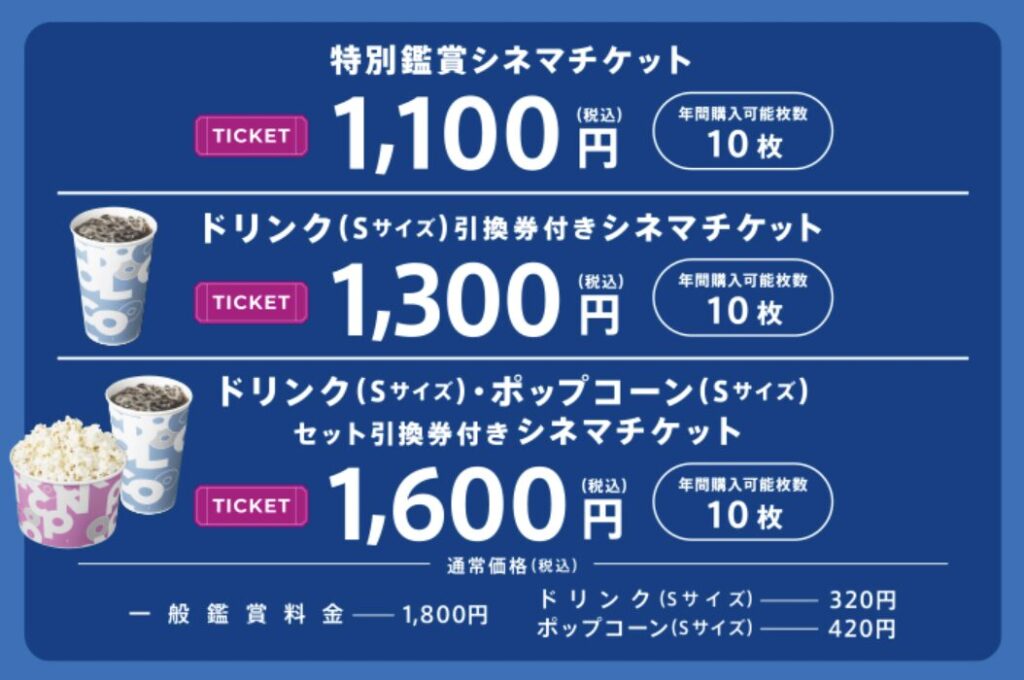 また、同伴者についても、年間10枚の中から必要枚数を事前に購入しておけば、同じく1,100円で映画を見ることができる。