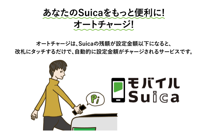 残高が設定額を下回ると、改札通過時に自動でSuicaにチャージされる。