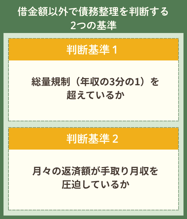 判断の基準は、借金の総額だけでなく、以下の要素が複雑に関わってくる。