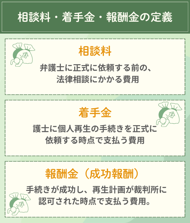 個人再生の手続きにかかる費用は、大きく分けて「弁護士(または司法書士)への依頼費用」と「裁判所へ納める実費」の2種類です。
