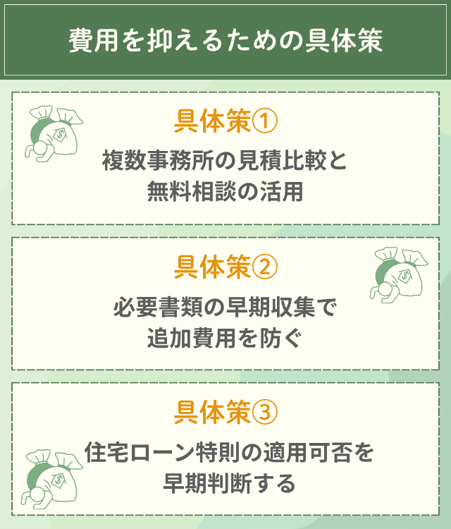 それでも、できる限り費用は抑えたいものです。 ここでは、費用を抑えるためにできる現実的な工夫を3つ紹介します。