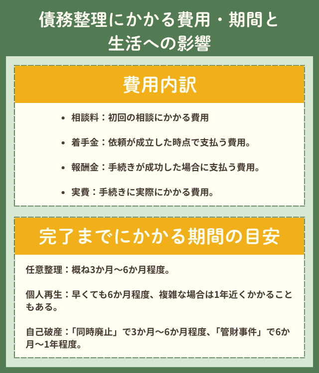 ※費用や期間、信用情報の登録期間はあくまで目安であり、状況によって異なる。