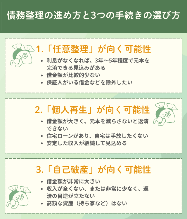 どの手続きを選ぶ?借金額・収入・資産から判断