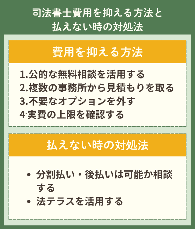無料相談を利用して、複数の司法書士事務所(や弁護士事務所)から見積もりをもらい、総額を比較する。