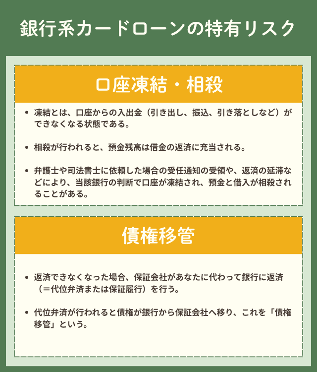 - 銀行系カードローン特有のリスク(口座凍結・保証会社)